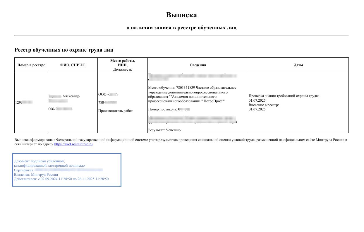 Важно отметить, что данные о всех наших студентах вносятся в реестр ЕИСОТ, посредством которого работодатель легко и быстро может проверить наличие требуемой квалификации у специалиста.